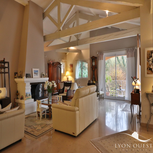 En exclusivité nous vous présentons cette belle maison familiale située au centre de charbonnières-les-bains, au calme, sur un magnifique terrain de 1.650m2 avec une agréable piscine et une vue imprenable sur les monts du lyonnais. La maison de 338 m2 (262 m2 habitable) est composée d’un double séjour avec cheminée ouvrant sur une grande terrasse, d’une cuisine indépendante, un cellier, 3 chambres en rez de chaussée avec salle de bains, 3 chambres à l’étage avec 1 salle de bains. Un appartement de 56 m2 au 1er niveau est aménagé avec 2 chambres, une cuisine et une salle de bains. 2 grands garages et une cave complètent ce bien. Nombreuses possibilités d’aménagement pour ce bien d’exception ; une entrée indépendante existante donne la possibilité d’un espace pour une activité commerciale ou libérale. Pour plus d’informations contactez Catherine Ollagnon 06 07 16 91 50